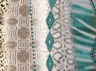 Baumwolle mit Seide in Patchwork-Optik in lila /aubergine /mint.